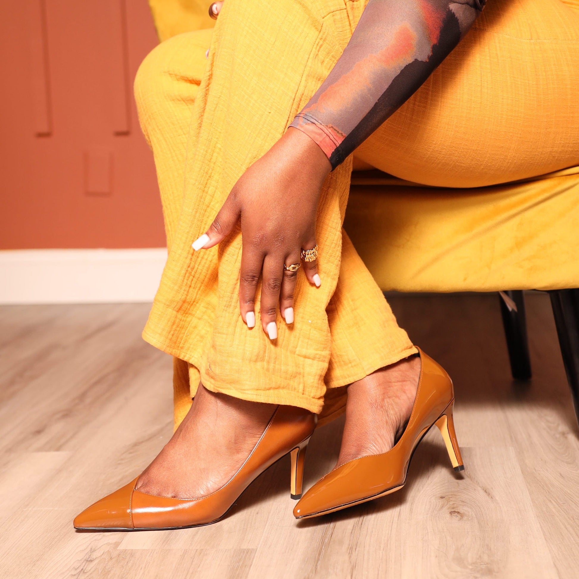 Michelle Pumps pair texture and envelope dimension in pretty pointed toes topping stiletto heels for a gorgeous look. Featuring a two-toned accented design with black patent and vegan leather, this shoe is perfect for events and professional settings alike. Michelle slides on with ease and adds an ultra-sleek touch to even the most classic ensemble. With simple styling of dresses and pantsuits, these shoes simultaneously add just the right amount of color balance to your outfits. Michelle is an elegant pump that you'll never want to part with.